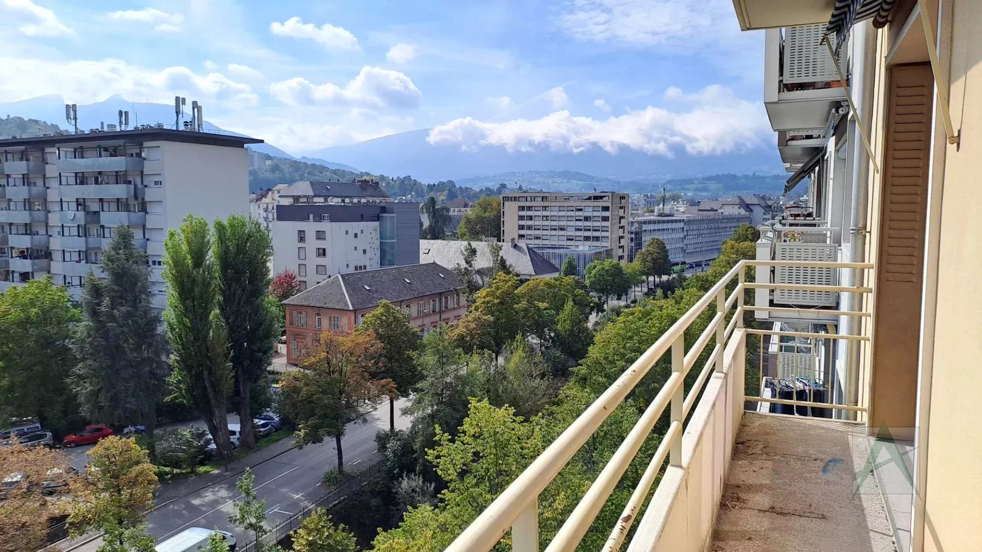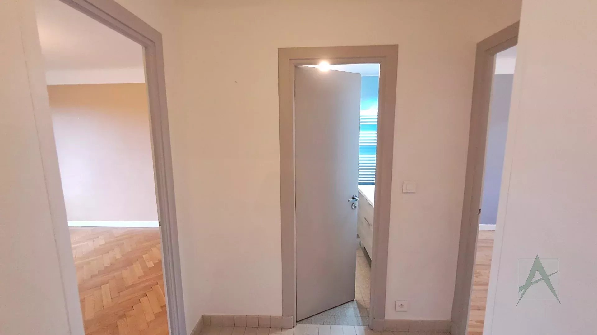 A louer dans une résidence sécurisée, T4 de 99.99 m² au 6 éme étage avec ascenseur comprenant entrée, vaste séjour, cuisine aménagée avec loggia, 3 chambres, salle de bains, wc indépendant, balcon Sud avec vue dégagée.