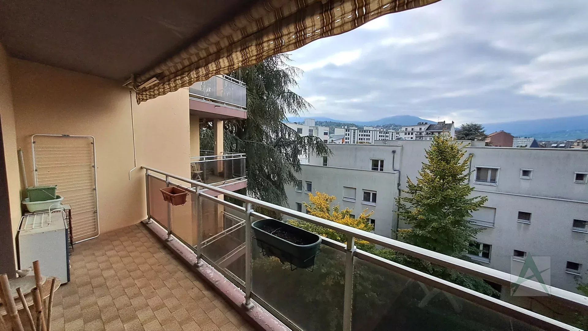 CHAMBERY - Avenue de Bassens - Dans immeuble sécurisé, nous vous proposons un T3 au 4 éme étage avec ascenseur de 73.09 m² loi Carrez et comprenant : hall d'entrée, séjour-salon, cuisine indépendante avec cellier, 2 chambres, salle de douche, wc. Balcon-terrasse exposé Sud-Ouest avec vue dégagée.